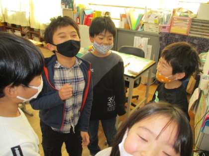 「おうちの人ともやってみてね。」と伝えて今日の音楽は終わりました。