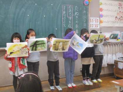 国語ではたぬきの糸車のお話を読んでいます。