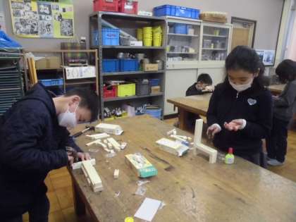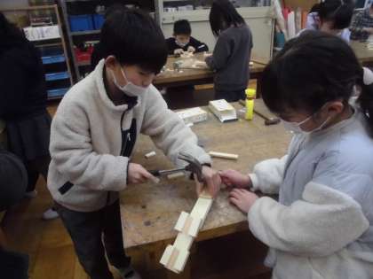 木とくぎを使って好きな動物を作っています。