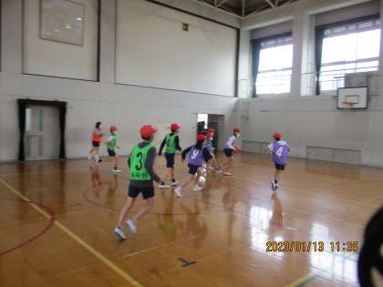 5年生の体育ではバスケットボールをしています。