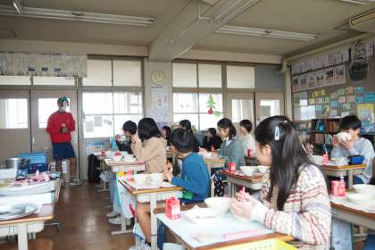 2月3日の節分,そして2月4日の立春を迎え,春のあたたかい日差しを感じる季節となりました。節分の日の給食時間に稲荷小学校へやってきたのは,鬼ではなく桃太郎!今年も無病息災,健康に過ごせますよに。
