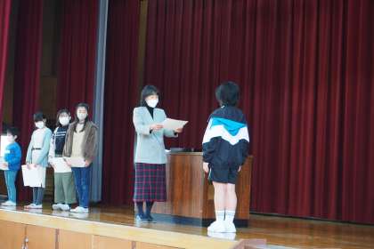 7日の朝会の時間に読書感想文の表彰式がありました。