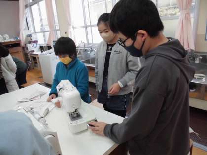 家庭科の学習「ミシンにトライ!」でミシンに挑戦しました。