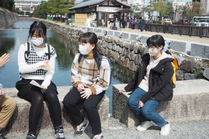 各部屋の襖絵や大政奉還の様子が再現されたものを見て,江戸時代の学習を振り返っていました。