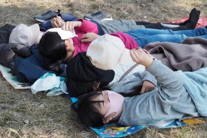 おにごっこをしたり,お昼寝をしたり,大政奉還ごっこをしたり,工夫して楽しく遊んでいました。