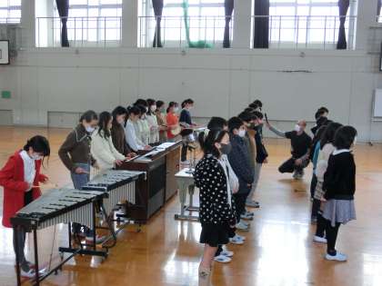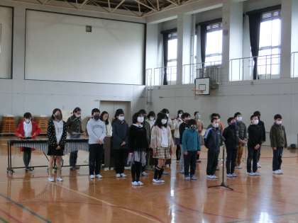 6年生が好きな「オワリはじまり」という曲を合奏と合唱の組み合わせで発表しました。