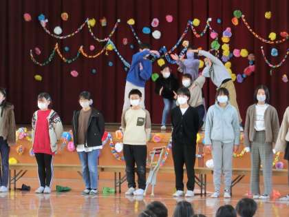 最後に、学校のみんなに思いを込めたカラフルな紙飛行機を飛ばしました。