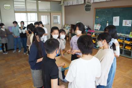 ウィンク光線は,ウィンクをしてるのに相手に伝わらない…という時もあったようですが,みんな楽しんでいました。伝言ゲームを背中に書いた文字をあてるということで,みんな背中に全神経を集中させていました。