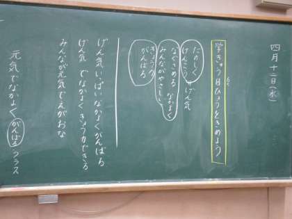 とてもシンプルですが,子どもたちが一生懸命話し合って決めた、大事な大事な学級目標が出来上がりました。