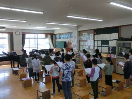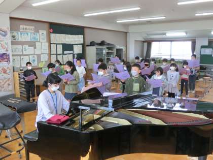 今日は、ピアノ伴奏に合わせて、とてもきれいな歌声で稲荷小学校校歌を歌いました。