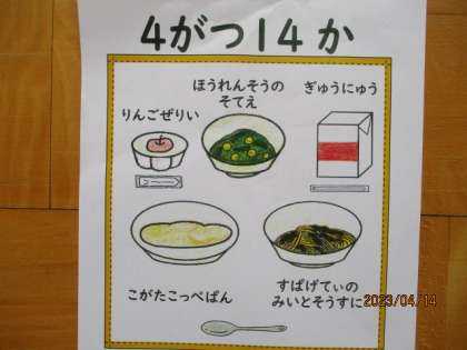 朝から楽しみにしていた初めての給食。中間休みには「なんか玉ねぎのにおいがする!」とするどい声も聞かれるほどでした。確かに今日のメニューはミートソーススパゲッティーだったので,子ども達の鼻はさすがです。