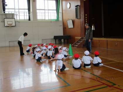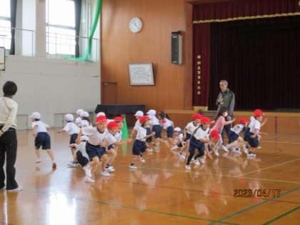 体育館では,色々なミッションに従っての「ならびっこ」を元気いっぱいがんばっていました。