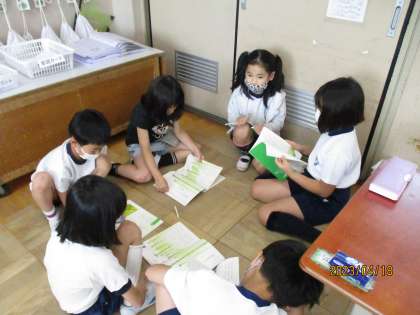 今日は、役割を決めてグループで話し合って読み方の工夫を考えました。読むだけでなく、動きも考えるグループ、全員で読む場所を作ったグループなど、それぞれのグループで話し合って練習していました。
