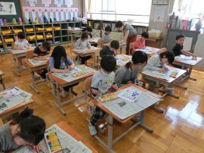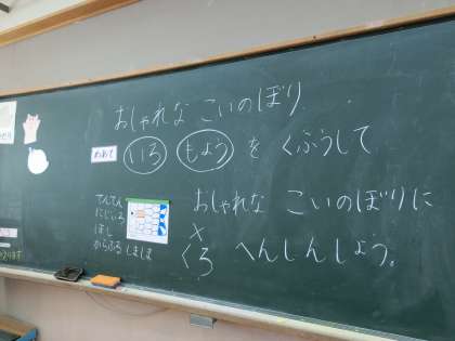 今日は、クレパスを使ってこいのぼりに色をぬりました。