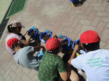 理科でグループごとに種まきをしました。3年生では、ひまわり、ホウセンカ、大豆、オクラを育てていきます。4つのグループに分かれて、順番に水やりをしていく予定です。今日は、その種まきをしました。芽が出るのが楽しみですね!
