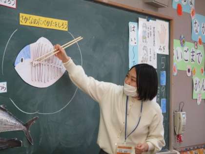 1年生・じょうずなたべかたをおぼえて おさかなめいじんになろう