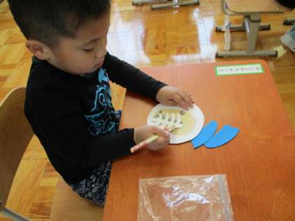 先生手作りの「お魚キット」を使って,まず食べ方の手順を教えていただき,そのあと子ども達用にも用意してくださった「キット」を使って,自分たちでも練習してみました。キットでは,みんなばっちりと完食できていました!