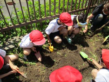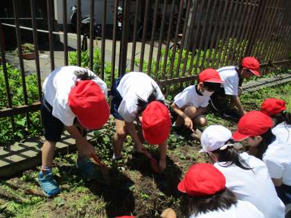 今日は、みんなでさつまいもの苗を植えるための準備をしました。