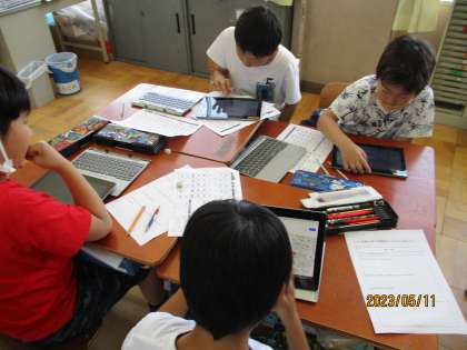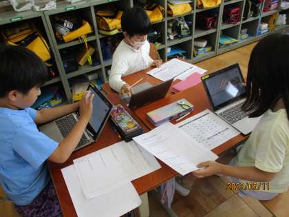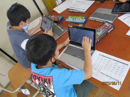 初めての調べ学習でしたが、ローマ字表を見てグループで協力しながら、頑張りました。