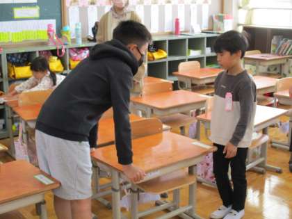 先週から1年生に掃除を教える取り組みをしています。優しく関わる姿を見ると温かい気持ちになります。1年生と関わることでリーダーとして成長していけると感じています。今月は1年生を迎える会もあり、いよいよ稲荷小のリーダーとして活動していきます!