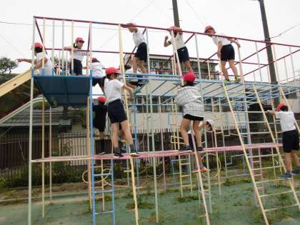 少し時間があまったので、子供たちのリクエストで遊具を使って遊びました。