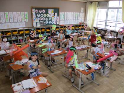 図工科は「わっかでへんしん」という学習をしました。