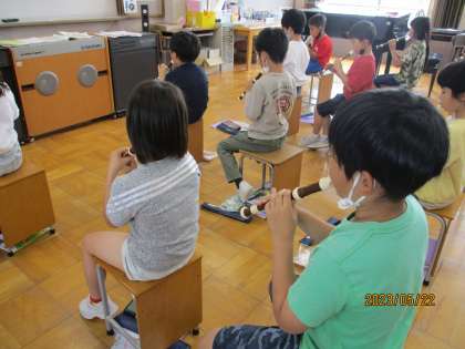 リコーダーは穴をしっかり押さえないと正しい音が出ないので、穴をふさぐことに苦戦している子が多かったです。息の強さを調節することにも気を付けて、練習を重ねてきれいな音色を響かせてほしいと思います。