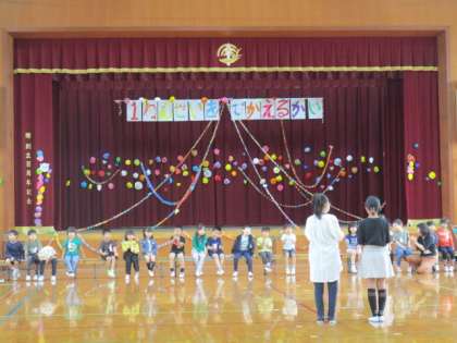 1年生を歓迎するために、前日に飾り付けを行いました。みんな楽しそうに作業する姿に、温かい気持ちになりました。本番、6年生と計画委員が中心となり、楽しい会になりました。