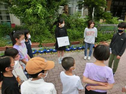 あいさつ運動の終わりには、輪になってしっかりと振り返りをしています。