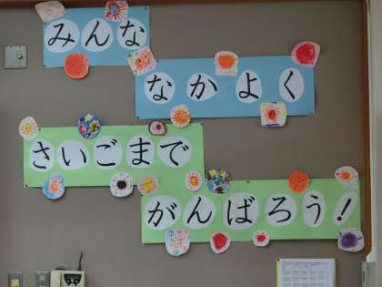 各クラス、みんなで決めた1年間の目標が掲げられています。