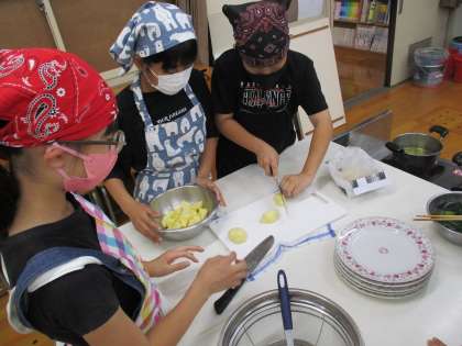 手順を確認し、友だちと役割を分担して、ほうれん草のおひたしとゆでいもを作りました。