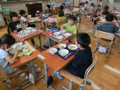 今日の給食には、給食調理員さん手作りの「ういろう」がデザートにつきました。