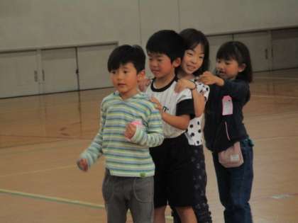 せっかくなので広い体育館に行って,まずは,一人ずつで練習をしてから,号車でつながって,元気いっぱい動くことを楽しんでいた子ども達です。