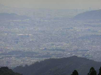 南の方角を臨めるポイントからは、遠く京都の町が、さらに遠くには、なんと大阪までが見えました。