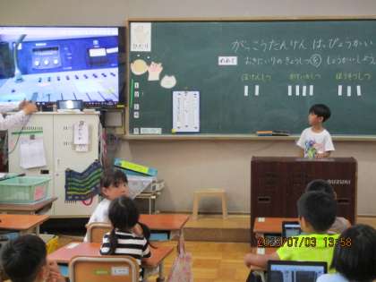 先週から,教室ごとに発表会をしています。先週は「音楽室」「保健室」今日が「家庭科室」「放送室」と発表をしてきています。発表を聞いていると,同じ教室を選んでいても,心に残ったものは,一人一人違います。今日の「放送室」は3人の子達が選んで発表してくれましたが,同じ放送の機械を選んでいても,そのわけは三者三様でした。