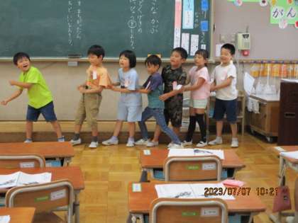 今週ずっとがんばってきた「おおきなかぶ」の音読劇を,今日はいよいよ発表し合いました。三つのグループに分かれ,役を決め,それぞれの役の付け足しのことばを考えて,練習してきました。