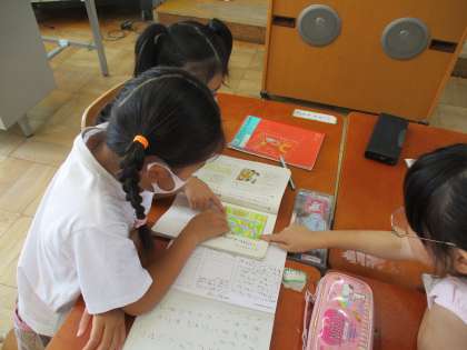 聞いている友だちが、自分の話していることを聞いてメモを取り、地図上の待ち合せの場所にきちんとたどり着けるかを確認しました。