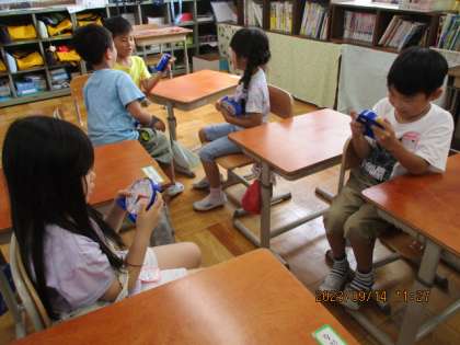 最後に,二人組になって「問題を出す人」「時計を合わせる人」をかわりばんこにして,楽しみました。