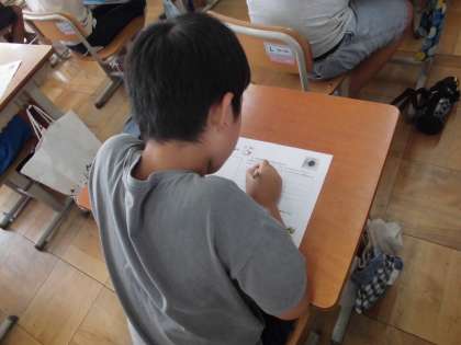 今回は、しば漬の秘密を探り、しば漬を稲荷小のみんなにアピールしようという内容でした。しば漬とはどんなものか、材料は何か、どんな風に作るのかなどを学習してから、一人ずつカードにアピールしたいことを書きました。