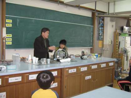 25日(土)に地域の方にお世話になり環境学習を行いました。今回は「学ぼう琵琶湖の音(ヨシ笛とピアノの演奏)」というテーマで、琵琶湖のことを学習しました。そして、琵琶湖の葦(よし)を使ったヨシ笛とピアノの演奏を聴きました。ヨシ笛の静かできれいな音色を聴き、みんなうっとりと気持ちよい時間を過ごしました。また、普段飲んでいる水が琵琶湖の水であることを知り、水を大切にしようということも学習しました。最後にNPOの方にコーラから真水になる実験をしていただき、またびっくりしました。半日とてもいい環境学習ができました。