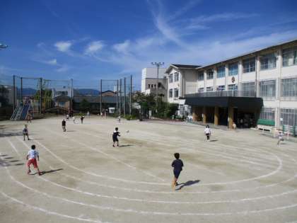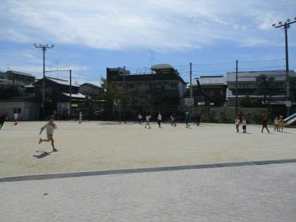 2時間目終わりのチャイムが鳴り終わると同時に、子どもたちがいっせいに運動場に出てきました。
