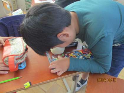 先週、球について学習しました。円と同じで、「直径」「半径」「中心」があることを知りました。球の直径のはかり方が教科書に載っていたので、実際にテニスボールやソフトボールの直径をはかってみました。