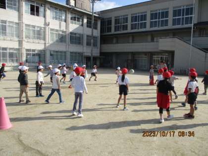 今日の朝スポは,「先週の運動会がんばったね」ということで,1,2年生いっしょに赤白対抗のドッジボールをしました。