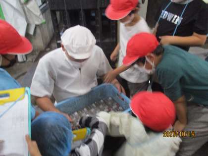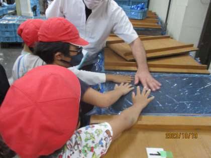 矢野食品の社長さんが、学校へ話をしに来てくださいました。初めて聞くことがいっぱいで、メモ用紙の裏までびっしりメモを取っている様子が印象的でした。工場では、実際にこんにゃくを触らせてもらってとても嬉しそうでした。
