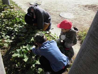 蔓を切って、土を掘り始めると紫の芋が顔を出し、子どもたちは大喜び。豊作とまではいかないまでも、無事収穫することができました。