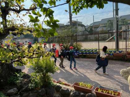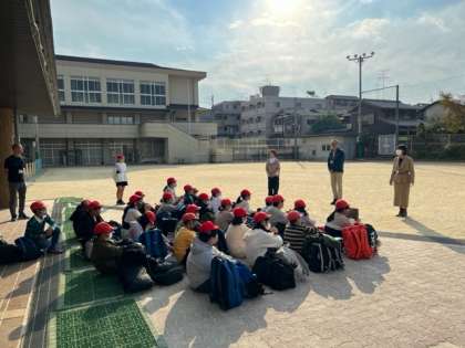 出発式を終え、学校を出発しました。