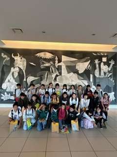 写真撮影もしてよいので、まずはみんなでピカソのゲルニカの前で記念撮影をしました。