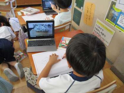 昨日から国語の学習は「しらせたいな,見せたいな」に入りました。学校にあるめずらしいものを,おうちの人に文を書いてしらせようという学習です。