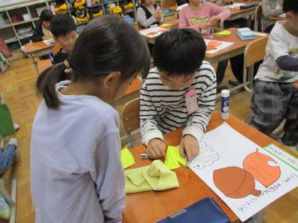 はじめは,「思いつかへんかも」とちょっと心配していた子達も,やっていく中でだんだん思い浮かべることができてきたようです。