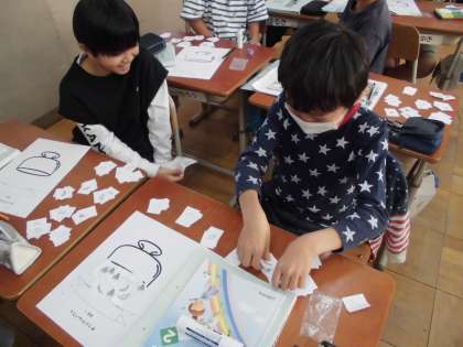 などとやり取りをしながら、ほしい果物カードをもらいパフェ作りを楽しみました。